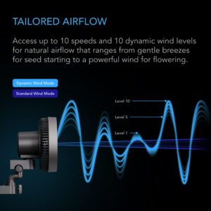 - Features 10 speeds and 10 dynamic wind modes to simulate outdoor airflow for optimal plant growth.